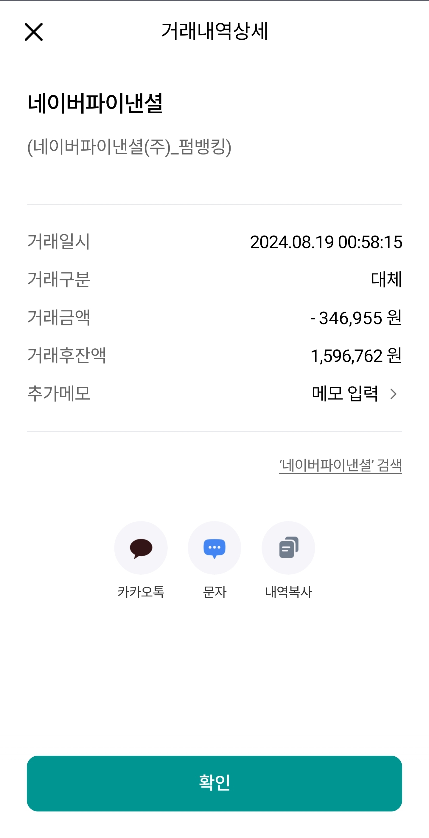 아래처럼 영수증이 발급된 것이 확인 가능하다.
