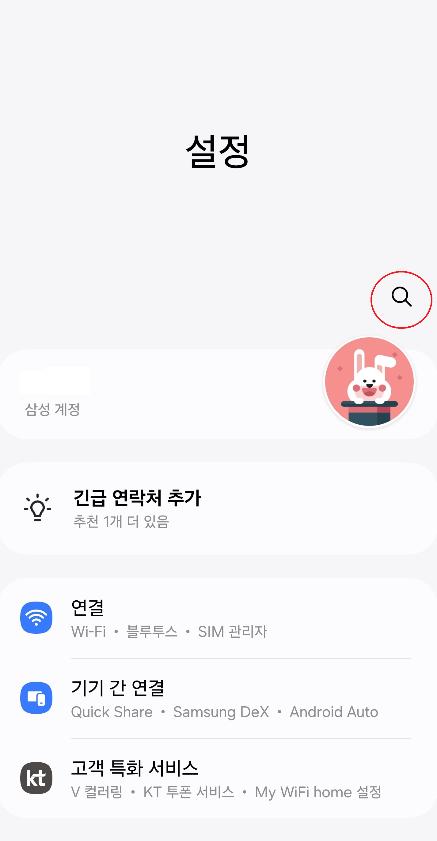 핸드폰을 켜서 "설정"에 들어간다. 설정에 들어가면 돋보기가 보일것이다.