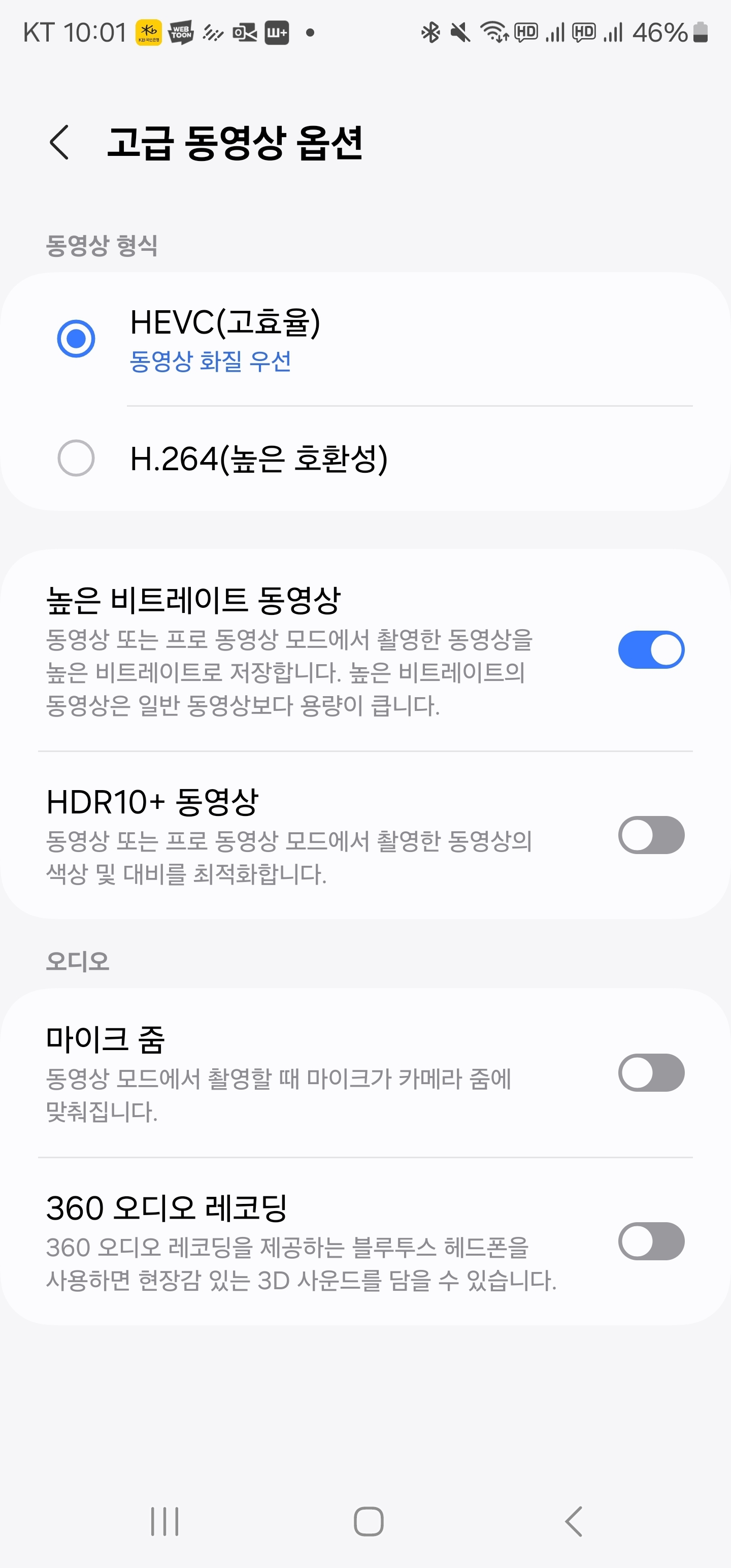 고급 동영상 옵션에 들어가서 아래처럼 세팅한다.